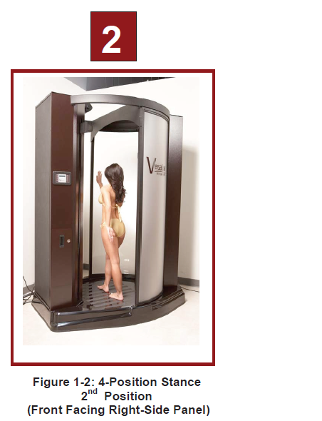 The VersaSpa® uses a 4-position stance for tanning and a 2-position stance for other applications. It also uses a 2 or 4 position dry cycle. Please review the supplied stance poster and multi-session menu.
